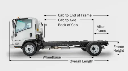 • Larger CA (Cab-to-Axle): Isuzu trucks have a larger CA than our conventional cab competitors. This allows for larger bodies to accommodate more cargo on similar wheelbase lengths.